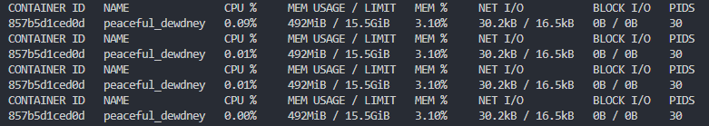 Anyway, once this got squared away, the Dockerfile was moved, we had almost a 6x decrease in memory usage, from 492MB down to 75MB.